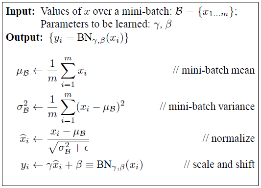 γ, β변수를 통해서 정규화 범위를 조정하는 것이다. γ, β는 학습이 가능한 변수이다.