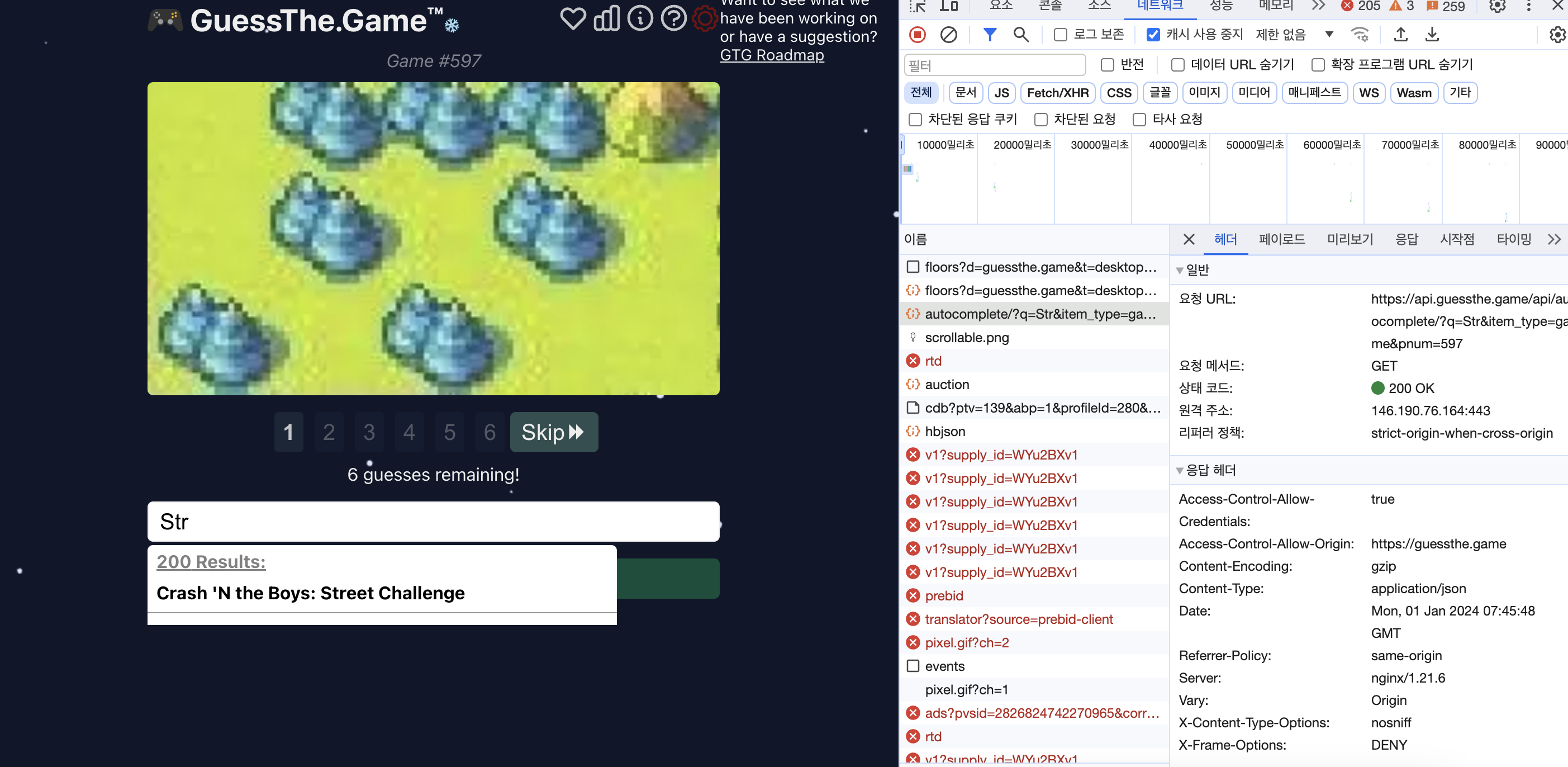 그래서 처음에는 개발자 도구로 GuessTheGame에서 제공하는 기능이 어떻게 제공되는건지 알고 싶었다.