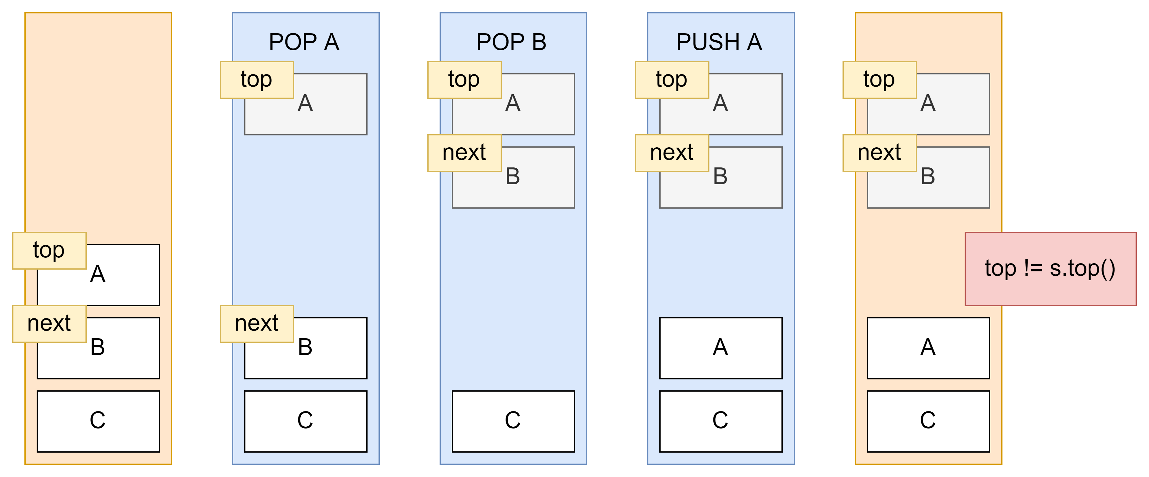 그리고 next인 B를 top으로 설정한다.
