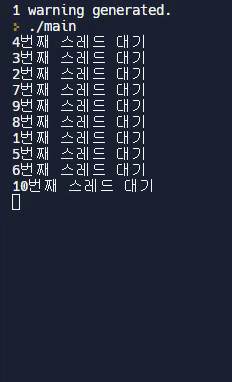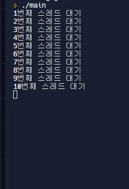 한편 다른 스레드에선 세마포어가 이미 0이기 때문에 sem_wait(&semaphore);에서 1이 될때까지 기다린다.