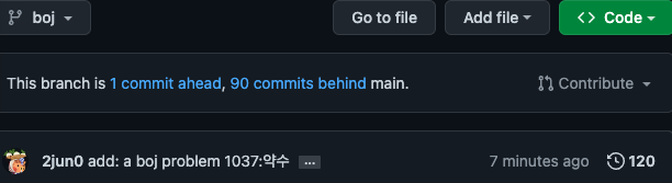 백준 허브는 main에 모든 커밋을 보내기 때문에 boj 커밋에 보내도록 수정해야 한다.
