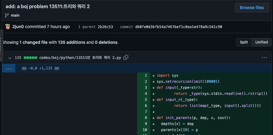 Algorithm/codes/boj/python/[문제 번호]번 [문제 이름].py형식으로 저장했다. - 커밋 메시지 (커밋은 boj 브랜치에 올라간다.)
