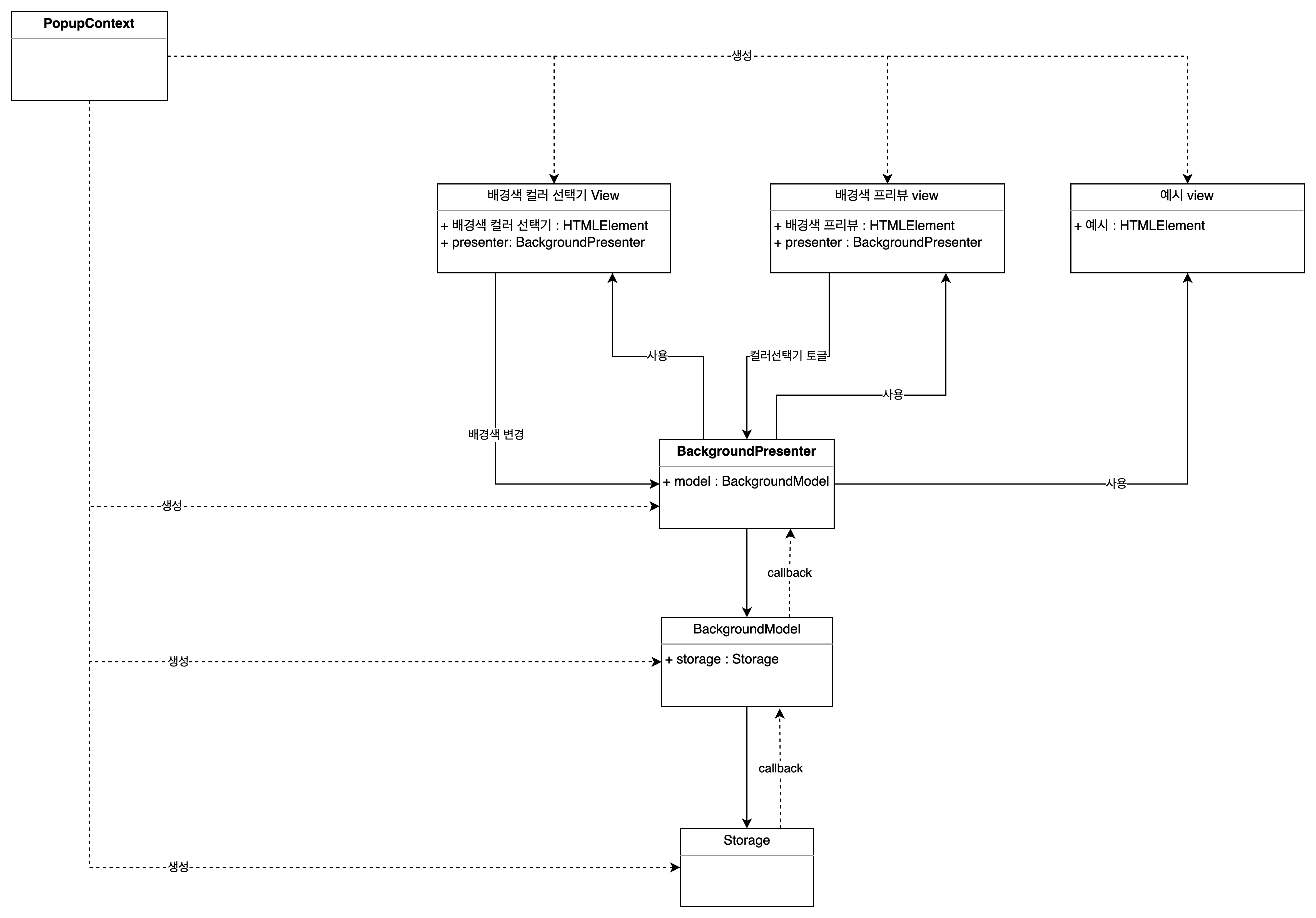 고로 PopupContext에서 객체들을 생성하고 필요한 객체는 의존성 주입을 하게 구성했다.